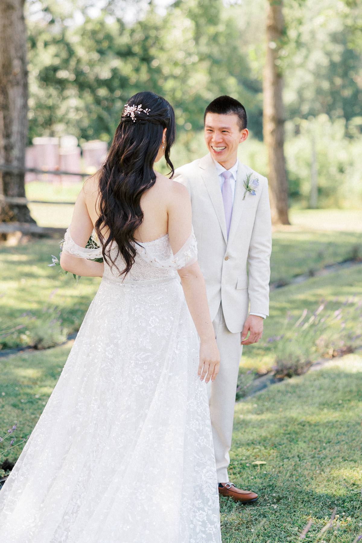 As Vivian tells it, “We decided that we still wanted to salvage our plans and turned to the idea of a local wedding in NJ instead (at least for the time being). I was randomly googling European weddings in NJ and came across a blurry image of a lavender farm which, to my surprise, happened to be Orchard View Lavender Farm here in New Jersey. We met with the sweetest owners of the property, Monica and Jim, who we fell in love with and their passion to build such a magical and whimsical gem of a farm.”