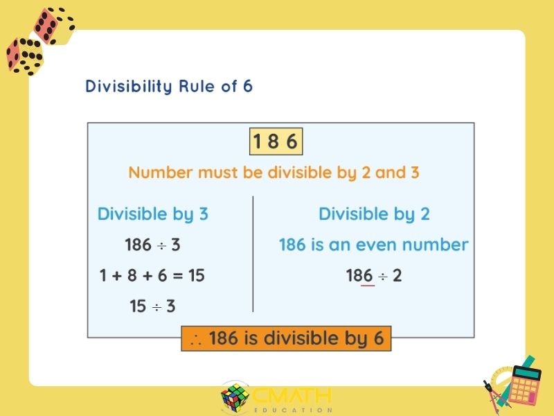 - Một số chia hết cho 6 khi nó vừa chia hết cho 2 (có tận cùng là số chẵn) vừa chia hết cho 3 (tổng các chữ số chia hết cho 3).