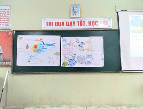 Giáo dục học sinh nhận thức sâu sắc về biến đổi khí hậu và tác động thực tiễn: Tiết học giúp học sinh không chỉ tiếp cận kiến thức lý thuyết trong sách giáo khoa mà còn hiểu rõ hơn về tác động cụ thể, sâu rộng và đa chiều của biến đổi khí hậu đến môi trường sống tại Việt Nam, đặc biệt là về khí hậu và thủy văn – những yếu tố có ảnh hưởng trực tiếp đến đời sống sinh hoạt, sản xuất nông nghiệp, và tài nguyên thiên nhiên nước ta.Thông qua việc thiết kế sơ đồ tư duy, học sinh có cơ hội hệ thống hoá kiến thức, thể hiện các mối quan hệ nhân quả giữa hiện tượng biến đổi khí hậu với các hệ quả về thời tiết cực đoan, thay đổi dòng chảy, xâm nhập mặn, hạn hán, mưa lũ… Việc trình bày theo sơ đồ tư duy còn giúp học sinh nắm bắt kiến thức một cách logic, dễ nhớ, và sâu sắc hơn.