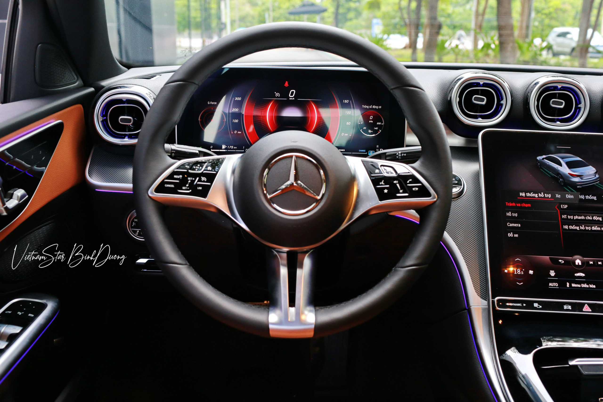 - Đèn Viền Nội Thất 64 Màu: Hệ thống đèn LED đa sắc màu tùy chỉnh, không chỉ trang trí mà còn tạo ra hiệu ứng ánh sáng phù hợp với tâm trạng, nâng tầm trải nghiệm trong nội thất C200 Avantgarde lên một đẳng cấp mới.