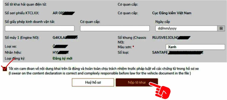 Bước 4. Kiểm tra và nộp trực tuyến tờ khai đăng ký xe