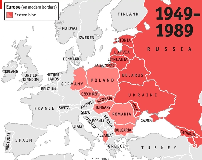“Bức màn Sắt” ở cựu lục địa, theo mô tả của Churchill (ngoại trừ điểm nhầm lẫn là nước Áo)