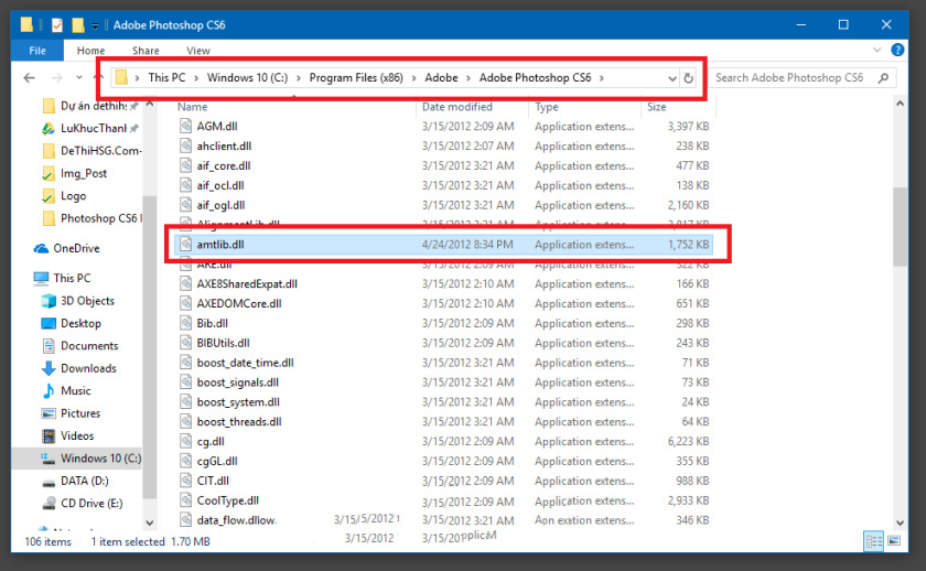 – Copy thư file amtlib.dll thư mục trên vào vị trí này (64 Bit): C:Program FilesAdobeAdobe Photoshop CS6. Trường hợp 32 Bit: C:Program Files (x86)AdobeAdobe Photoshop CS6. – Sau đó chọn Replace file và chọn Continue để hoàn tất crack.