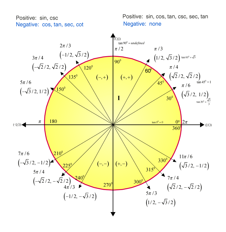 Among these angles 30, 45 and 60 degrees are important to remember. Also, learn them in terms of radians.