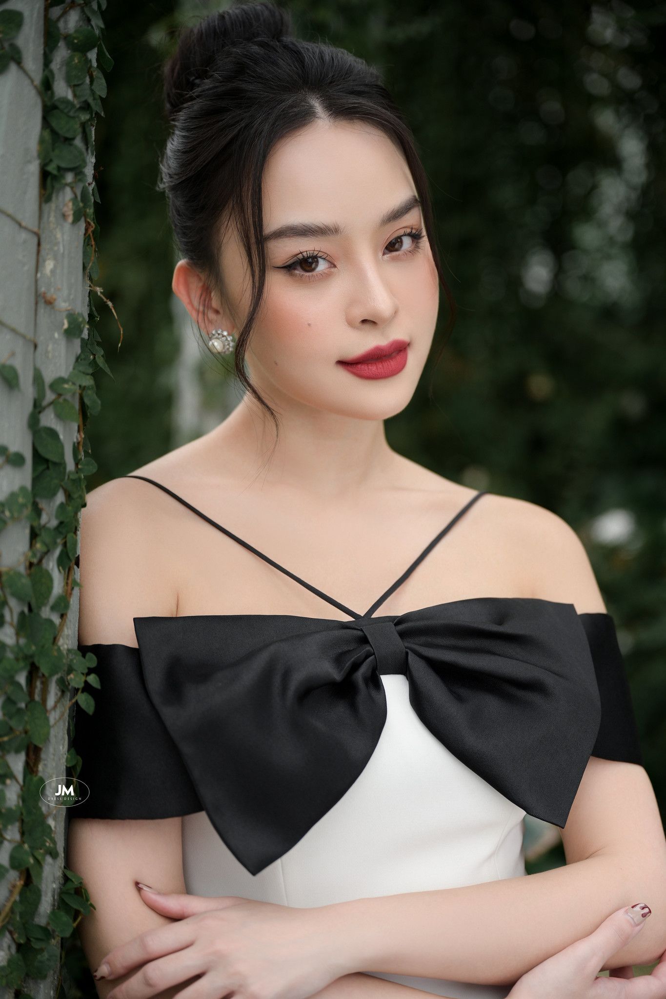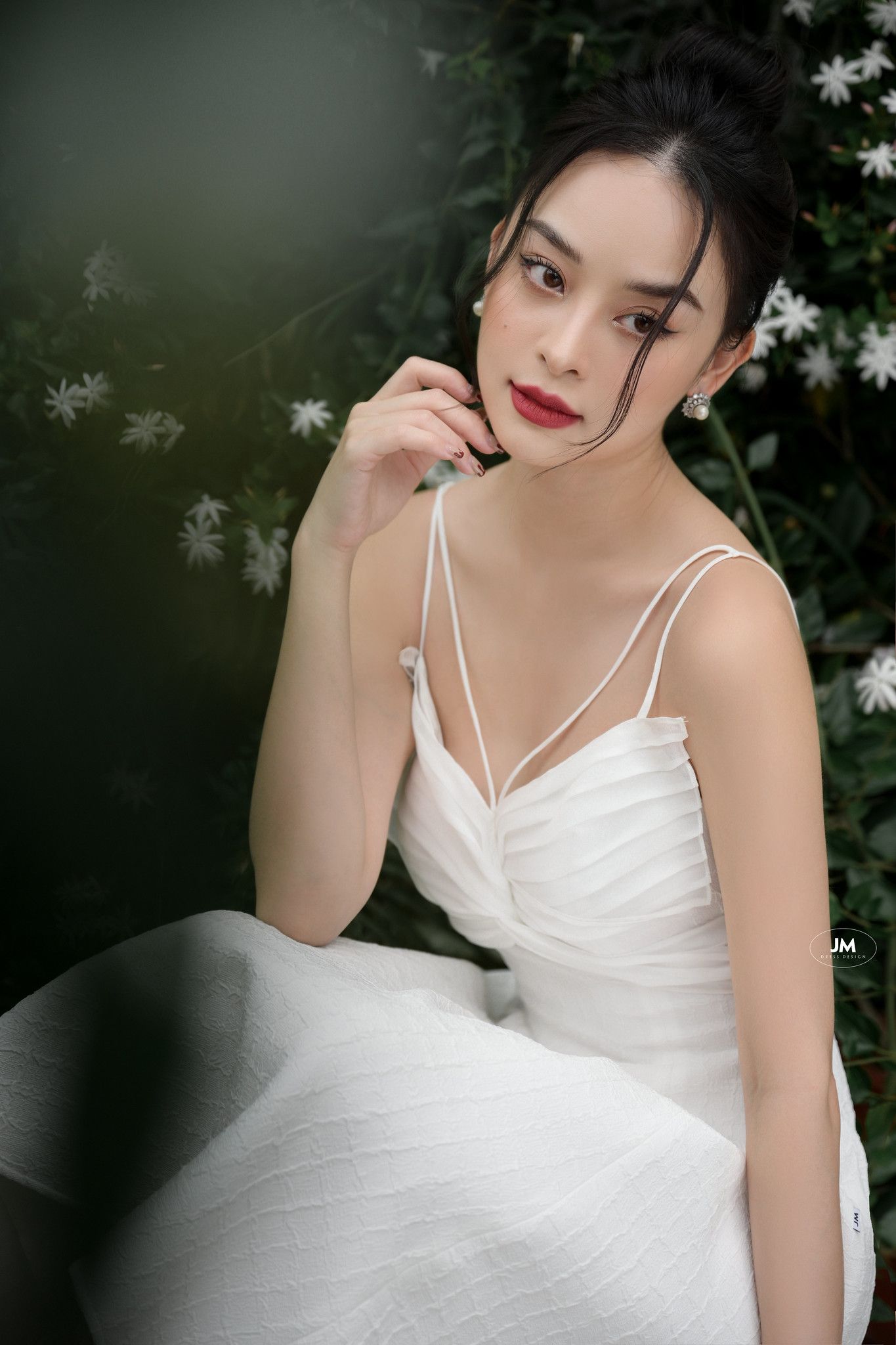 Một tay thả lỏng tự do và một tay nắm lấy phần dưới khuỷu tay giúp nàng có bức ảnh vừa thanh lịch lại nhẹ nhàng