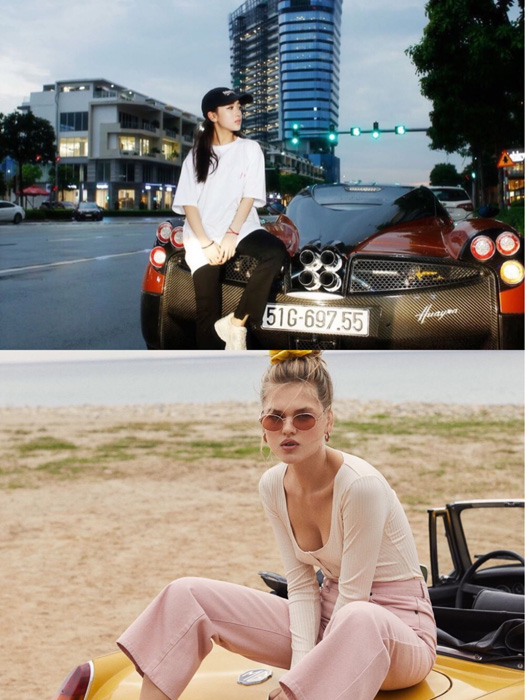Tạo dáng trước mũi xe ô tô làm toát lên vẻ quyền lực và sang chảnh