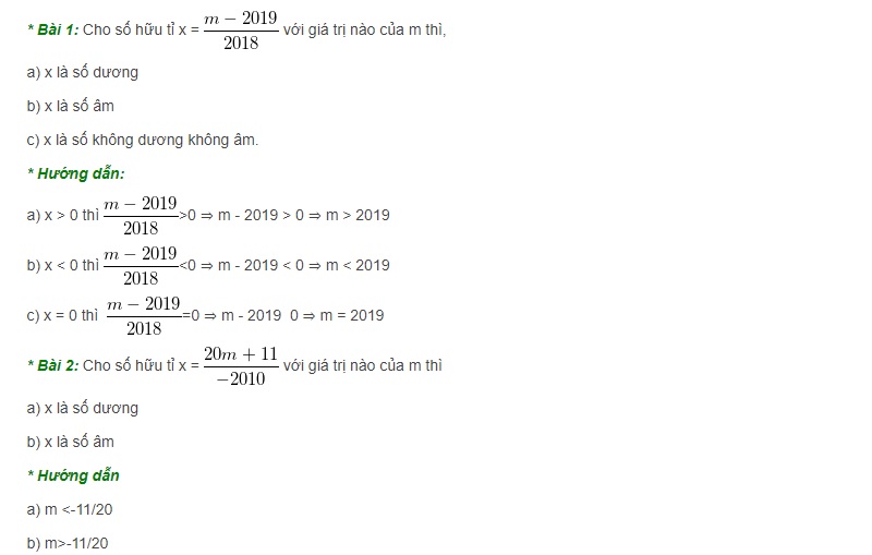 Dạng 4: Tìm điều kiện để một số hữu tỉ q là âm, dương hoặc là 0