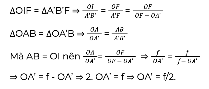 Ảnh ảo của vật cách thấu kính một khoảng có độ dài bằng tiêu cự.