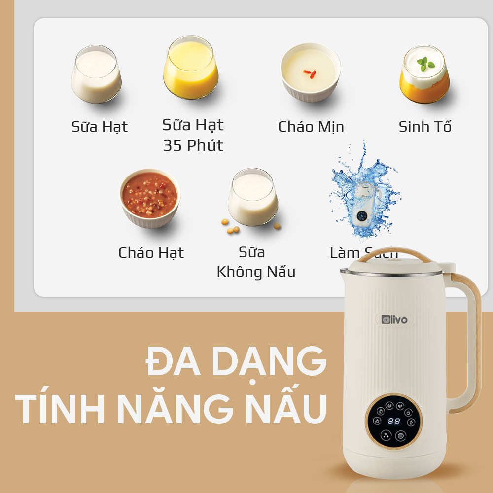 Chức năng đầu tiên và căn bản nhất của một chiếc máy làm sữa hạt đó là khả năng làm được món sửa hạt. Với OLIVO CB400, nó sở hữu đến 3 chức năng sữa hạt bao gồm:
