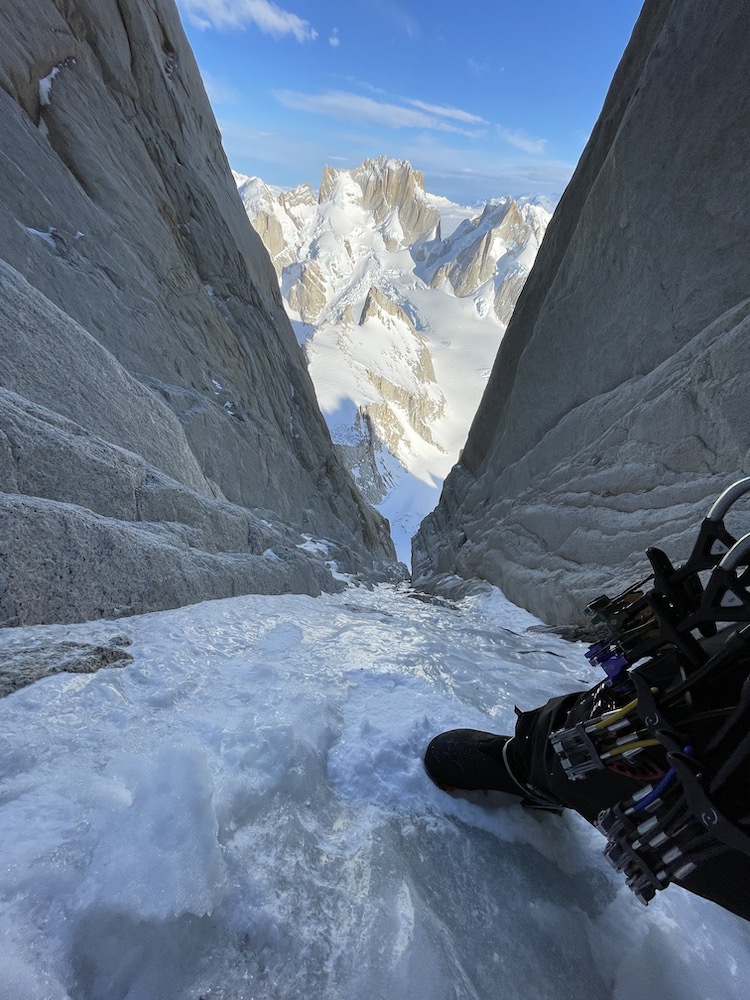 I have a long history with the Supercanaleta. I first climbed it in December 2007 with Maxime Turgeon. It was my second time climbing Fitz Roy, and was a memorable day particularly for our miserable open bivy in the rain at Laguna de los Tres after the long descent of the Franco route. In January 2009 I made the second solo ascent of the Supercanaleta, on what still remains one of the most intense days of my life (https://colinhaley.com/supercanaleta-solo-a-slightly-long-winded-description/). Finally, in 2016 Andy Wyatt and I climbed the route together, making the first one-day, car-to-car ascent of Fitz Roy. I probably know the route better than anyone, but nonetheless my most recent ascent was 6.5 years ago, and the route is 1600 meters tall, so I hardly felt like I remembered it well. I certainly know better than anyone else what it means to solo the route, as I’m the only living person to have done so (Dean Potter made the first solo ascent in 2002). Two other climbers have fallen to their deaths climbing solo on the route, and I have had the unpleasant experience of coming across both of their bodies, so the deadly consequences of making a mistake while soloing the Supercanaleta are grimly seared in my memory.
