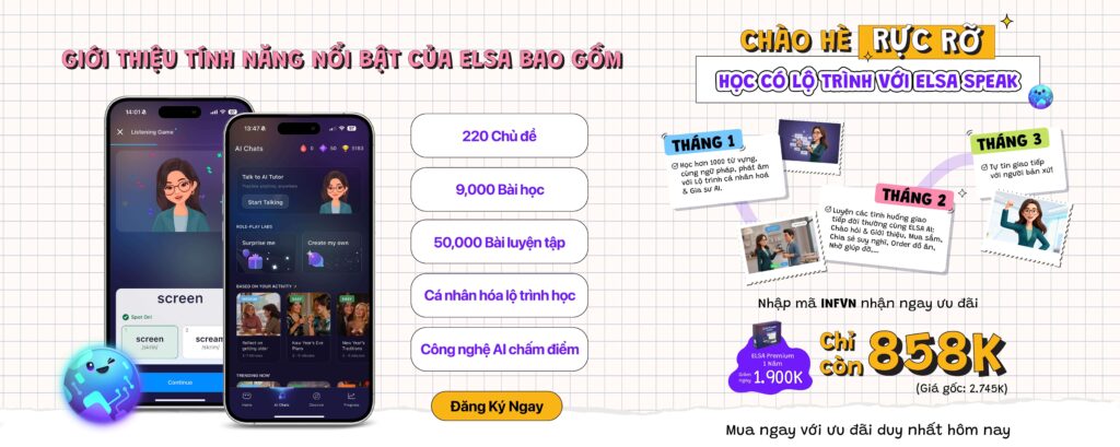 Muốn nói trôi chảy hơn mỗi ngày? Bắt đầu từ những bài học nhỏ mỗi ngày cùng với ELSA. Thử ngay! 👇