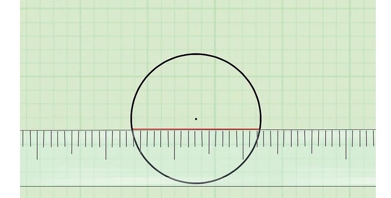 Bước 1: Sẽ vẽ một đường thẳng nằm ngang cắt hình tròn thành 2 nửa bằng nhau, cắt 2 điểm thuộc đường tròn. Chú ý, dùng thước để vẽ thẳng.