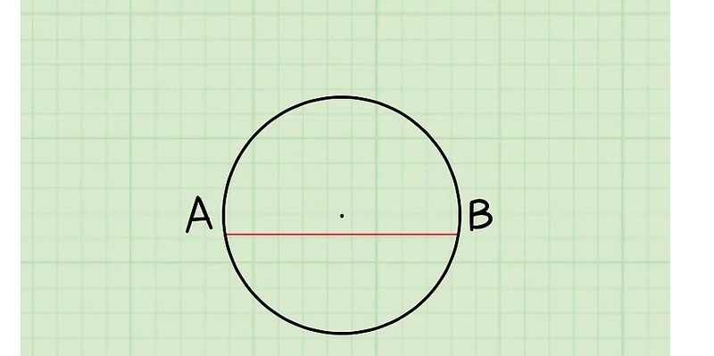 Đường kính là đoạn thẳng dài nhất nối hai điểm trên đường tròn và đi qua tâm.