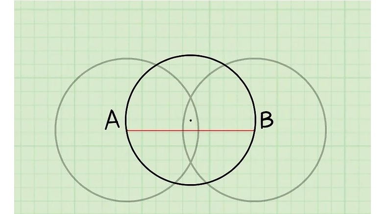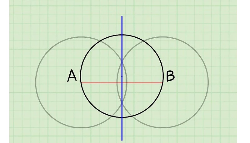 Bước 4: Tiếp tục vẽ đường thẳng mà hai hình tròn A và B cắt nhau. Đường thằng này chính là đường kính của kính tròn mà bạn đang tìm kiếm.