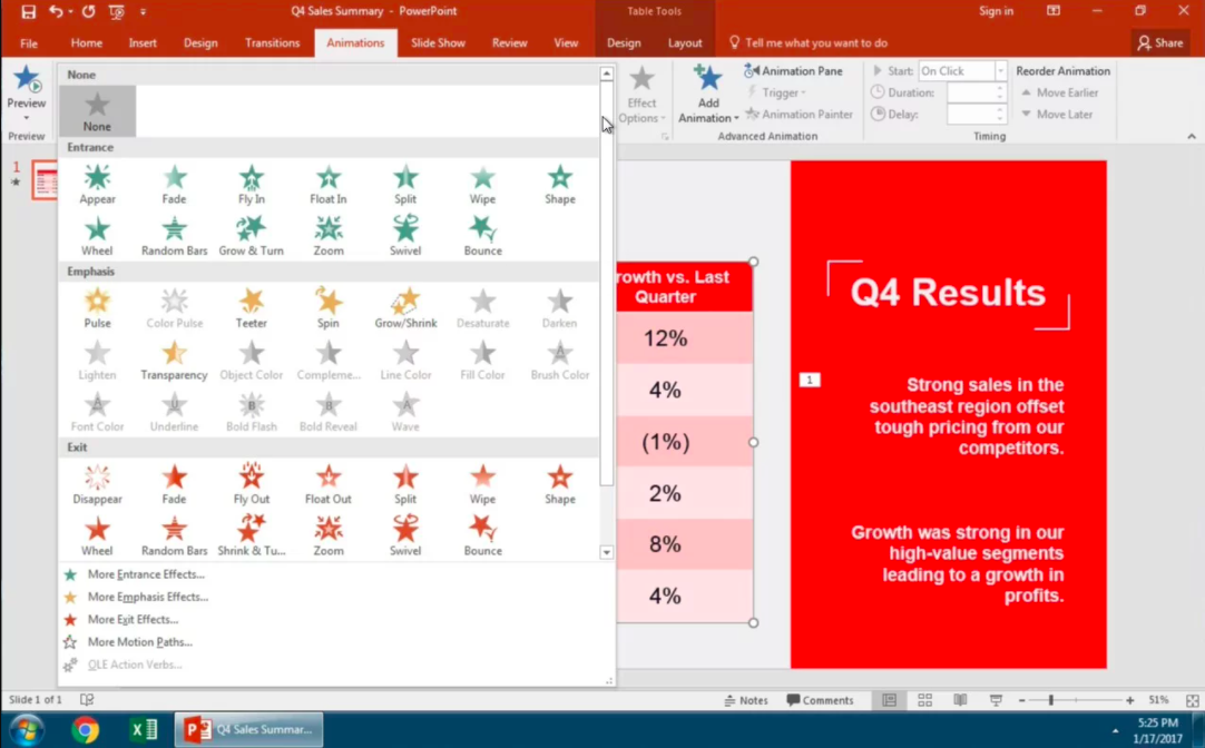 Hiệu ứng sẽ giúp cho câu hỏi của bạn thêm phần sinh động hấp dẫn hơn. Để thiết lập hiệu ứng, bạn nhấn tab “Animations”. Nó sẽ hiện ra nhiều hiệu ứng, bạn cứ chọn hiệu ứng mà mình thích là xong.