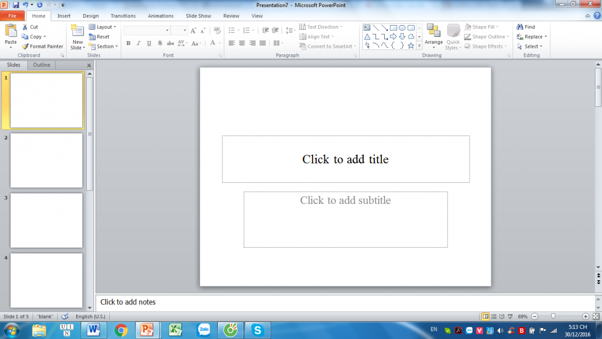 Bước 1: Tạo slide trên giao diện chính