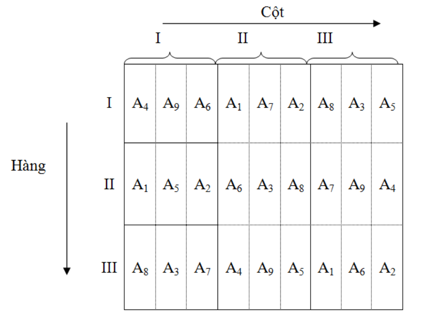 Hình 7. Sơ đồ kiểu chữ nhật Latinh 3x3x3