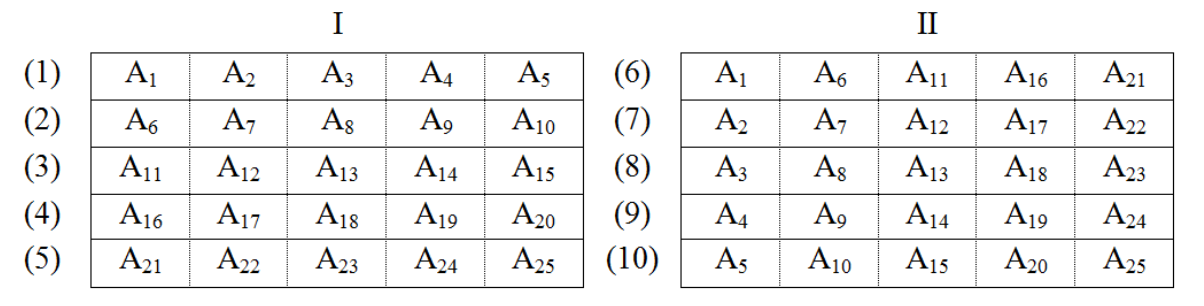 Hình 11. Sơ đồ thí nghiệm kiểu lô phụ 5×3