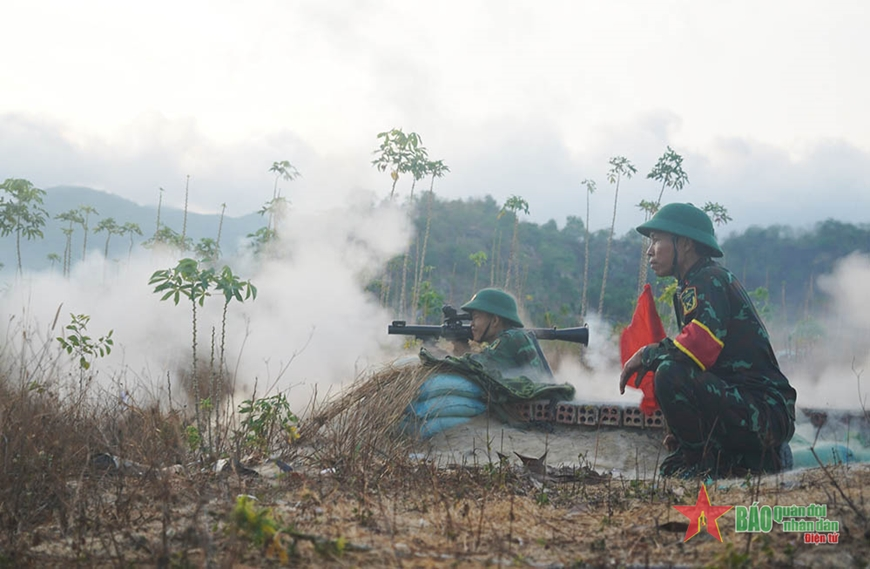 Học viên Trường Sĩ quan Lục quân 2 diễn tập chiến thuật vòng tổng hợp cuối khóa có bắn đạn thật. Ảnh: qdnd.vn