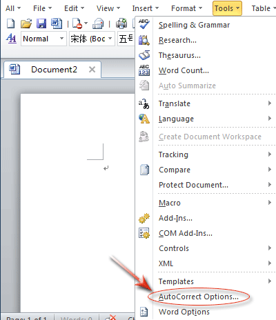 Lưu ý: Với phiên bản Word trước 2007, bạn vào Tools rồi chọn AutoCorrect Options để thêm từ vào.