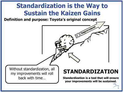 Standardized Work: Chuẩn hóa phương pháp làm việc giúp cho việc phân tích quy trình, đào tạo nhân viên được dễ dàng nhất, đồng thời giúp hạn chế lỗi xảy ra do thao tác hay sự sơ ý của con người.