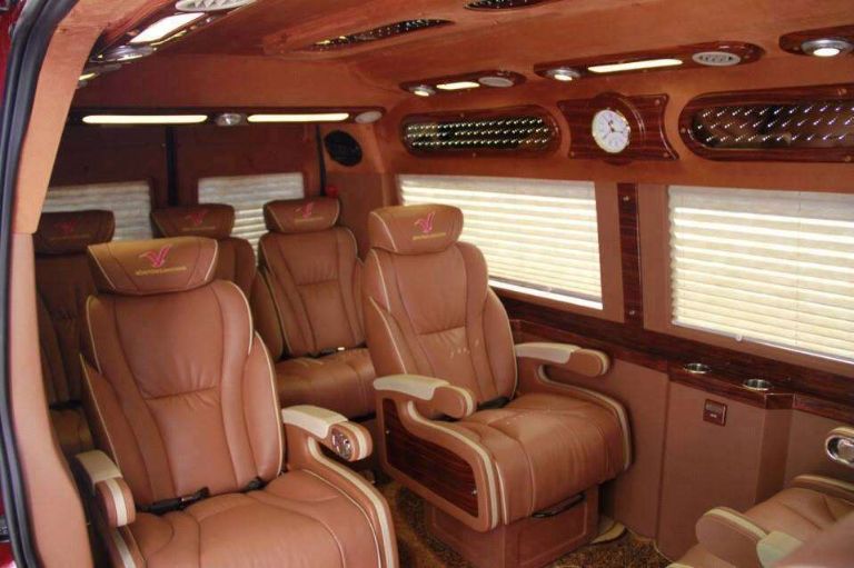 Nhà xe có thiết kế nội thất ấn tượng, tạo nét sang trọng và đẳng cấp. Xe có số lượng ghế ngồi được thiết kế với 9 ghế nhằm tạo sự thoải mái tối đa cho khách hàng. Toàn bộ ghế được cải tiến và nâng cấp với rộng rãi được bọc da Connolly. Không những thế, du khách còn có thể điều chỉnh sao cho thoải mái nhất, cũng có thể xoay ghế 360 độ.