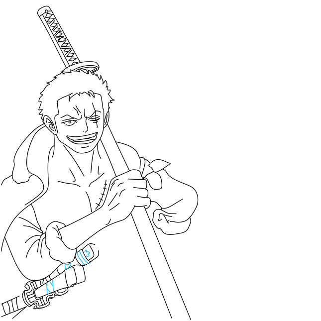 Bước 13: Bạn hãy vẽ thêm những chi tiết trên bộ trang phục mà Zoro đang mặc