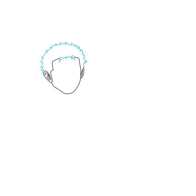 Bước 2: Tiếp đến , vẽ mái tóc và đôi tai cho cậu ấy