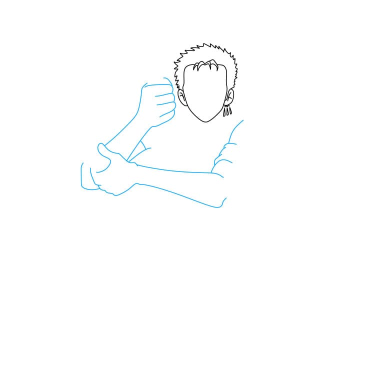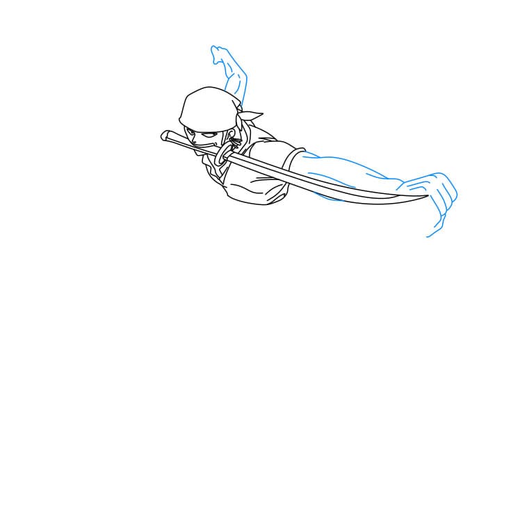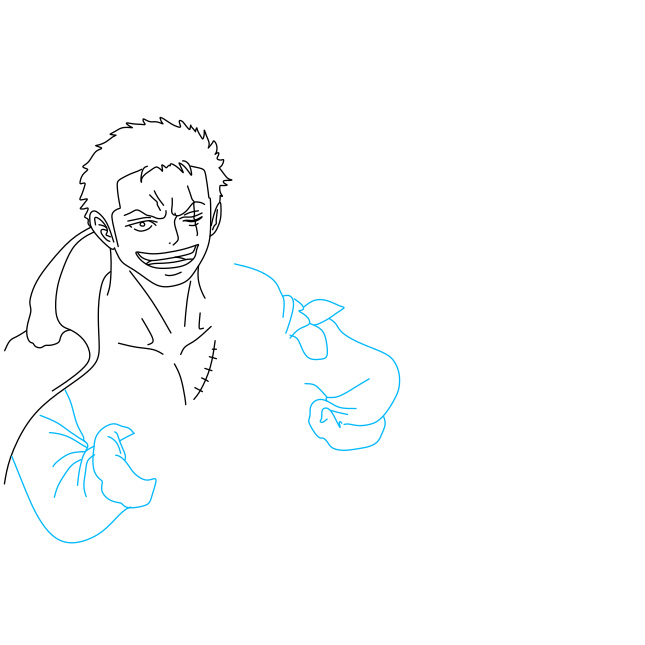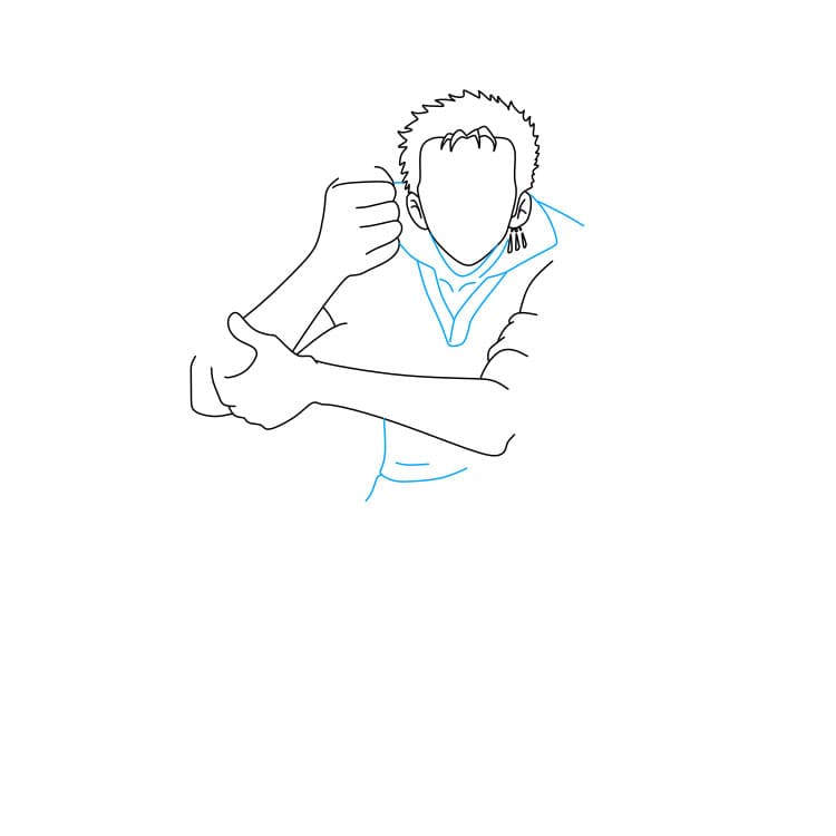 Bước 5: Vẽ hai cánh tay chắc khỏe và hai thanh kiếm mà Zoro đang cầm