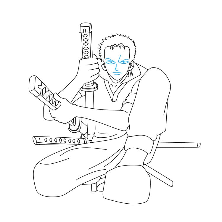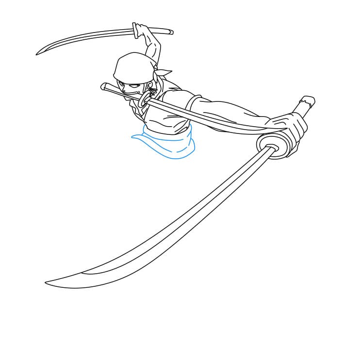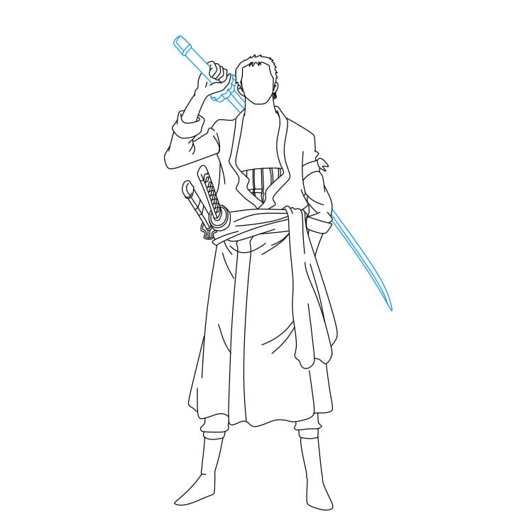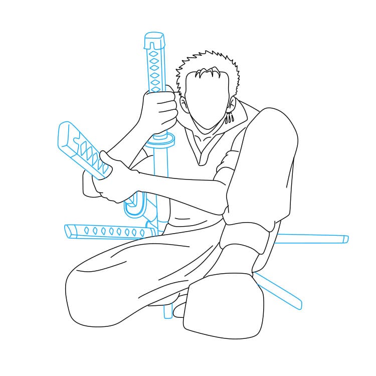 Bước 7: Vẽ thêm hai thanh kiếm treo ở hông Zoro