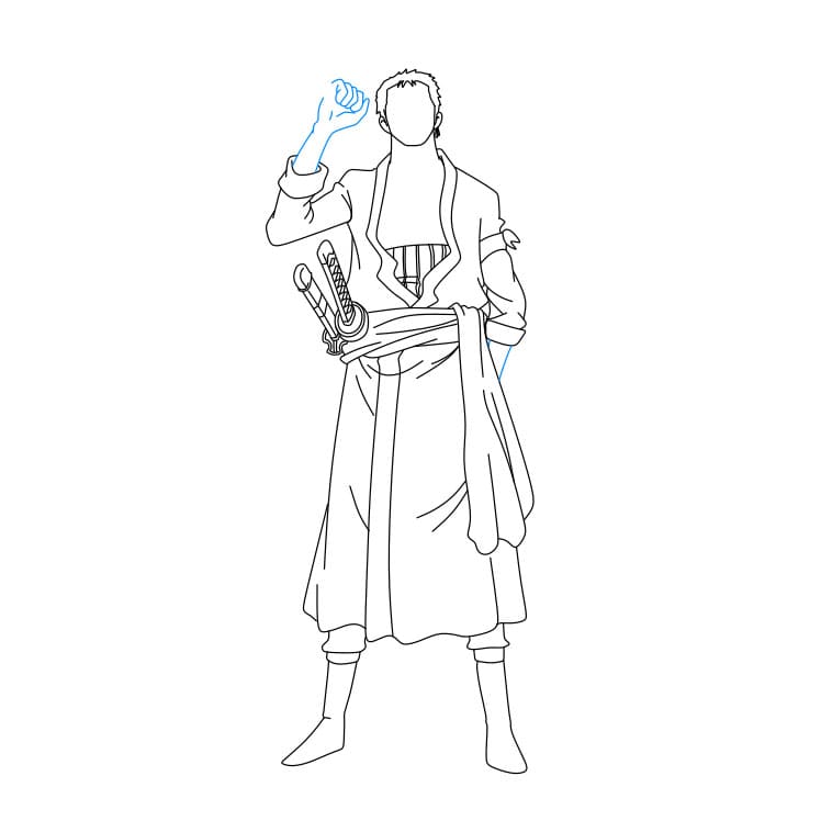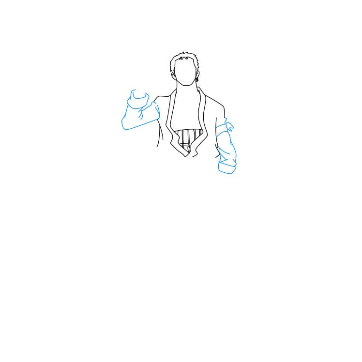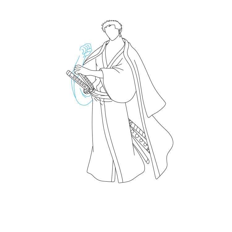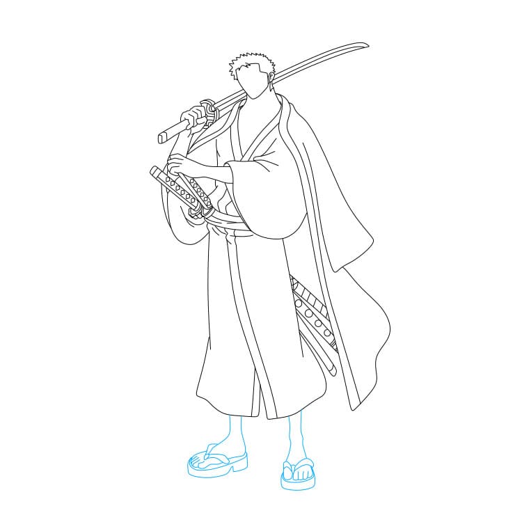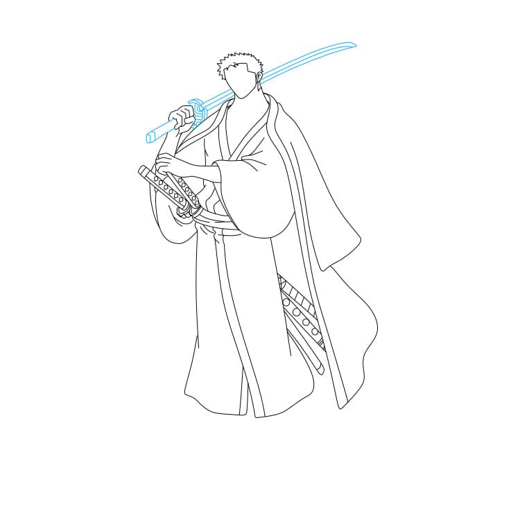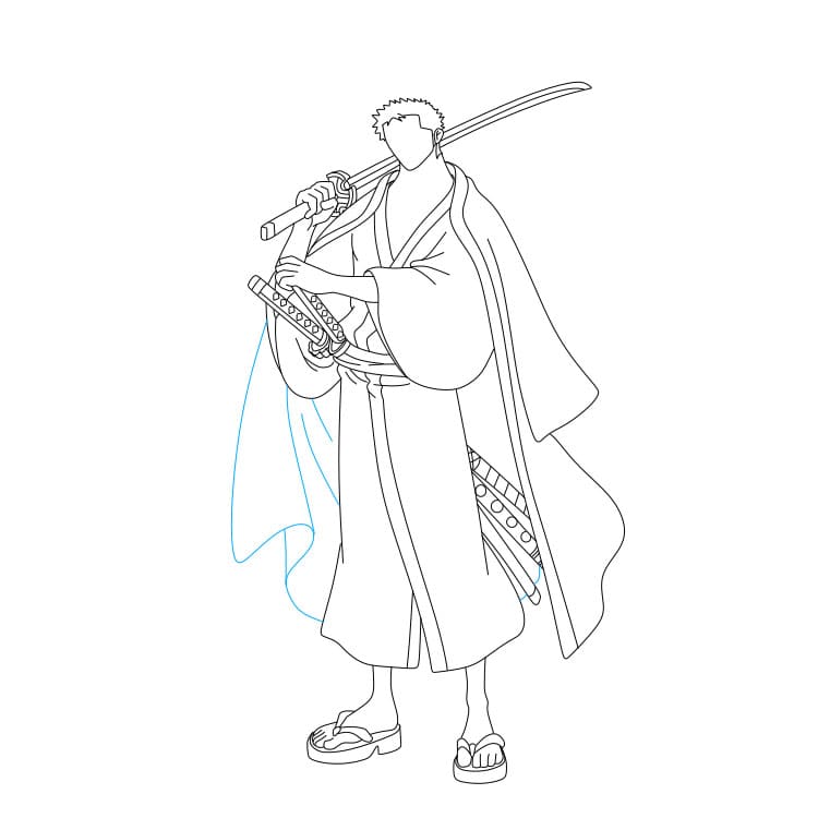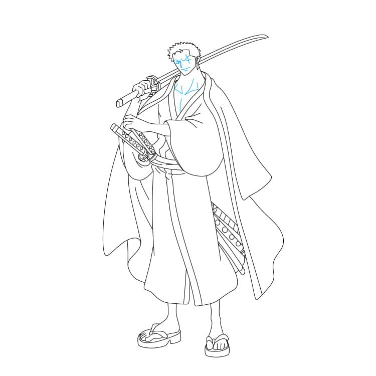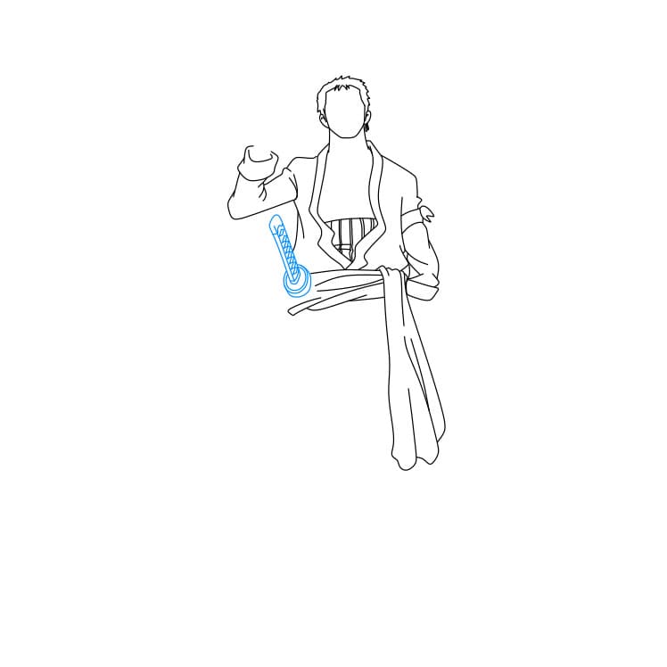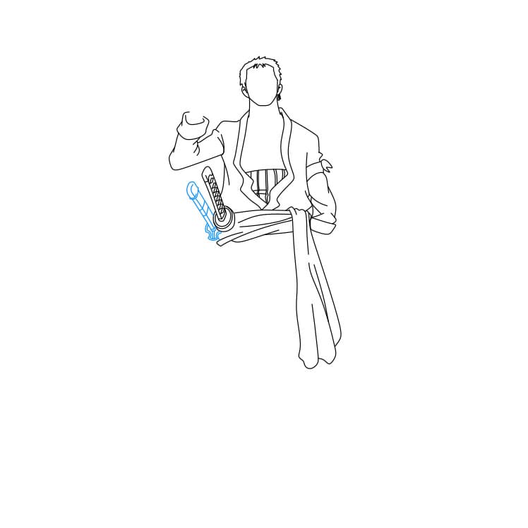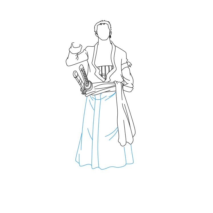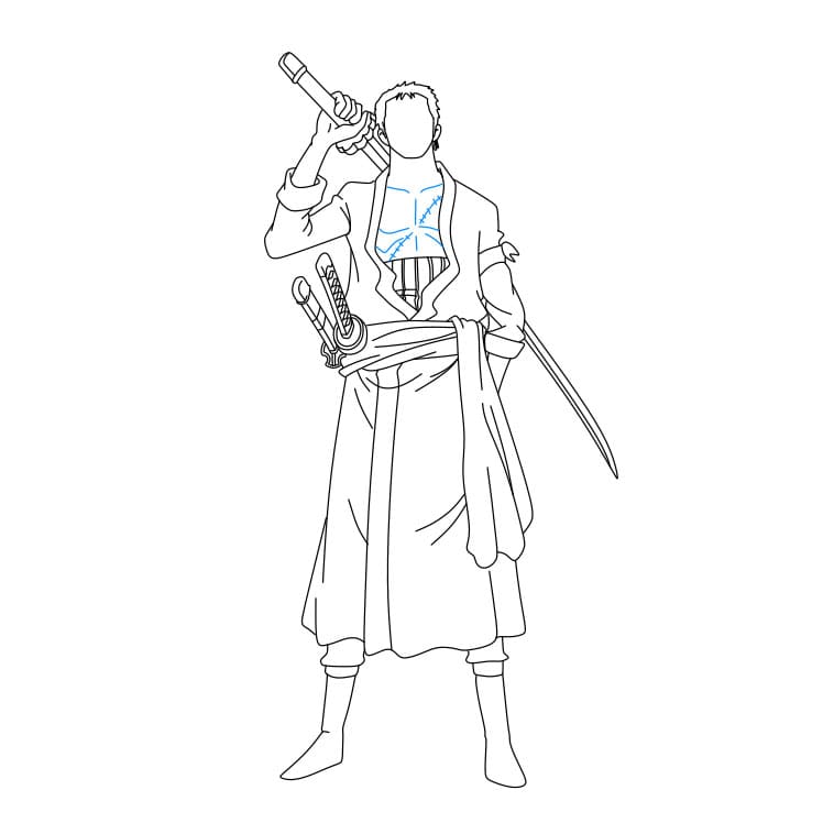 Bước 4: Bạn hãy vẽ bộ trang phục mà Zoro đang mặc