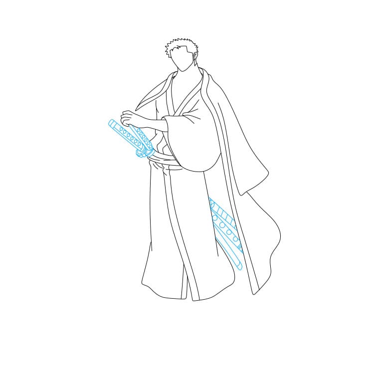 Bước 7: Vẽ những thanh kiếm đeo ở hông Zoro